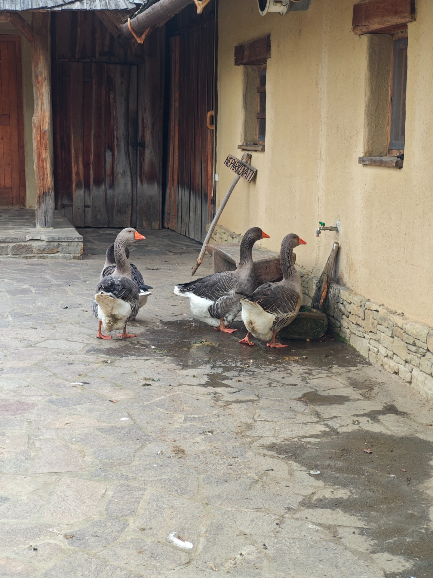 U vstupu do skanzenu paní pokladní Štěpánce do ruky vrazila proutek a řekla jí, že si bude hrát na husopasku. Mně trochu tiším hlasem vysvětlila, že aktuálně mají všechna zvířata na volno a že husy jsou tak trochu megery a klovou, ale když bude mít holčička proutek, tak se k nám nepřiblíží.